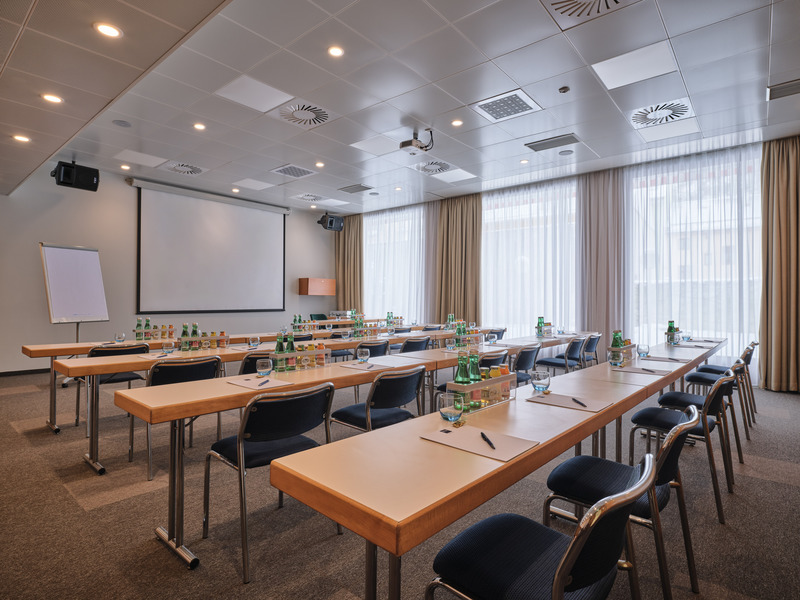 Unsere 6 Veranstaltungs- und Tagungsräume bieten Ihnen genügend Platz, um bis zu 250 Personen unterzubringen. Natürlich sind alle Tagungsräume mit einer Klimaanlage und Tageslicht ausgestattet.