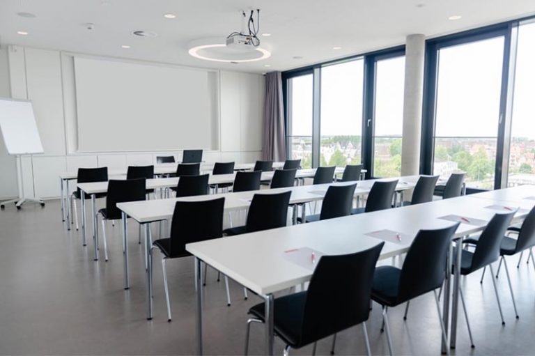 Bequeme Bestuhlung, große Tische und viele kleine Extras schaffen eine entspannte Atmosphäre. WLAN, ein Flipchart und Notizblöcke gibt es kostenfrei. Zusätzliche Technik und Verpflegung wie z.B. eine Kaffeepause, ein warm-kaltes Buffet oder ein Wunschlos-Glücklich-Angebot mit Frühstück und Mittag sind buchbar.