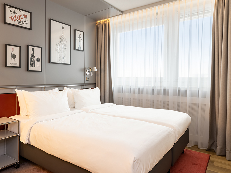 Die Vielfalt im Design unserer 284 Zimmer und Suiten bietet Ihnen das, was Sie von einem 4-Sterne Hotel erwarten. Ausgestattet von Standard bis Luxus genießen Sie neben den üblichen Annehmlichkeiten eines erstklassigen Hotels eine Kaffee- und Teebar sowie einen außergewöhnlichen Ausblick von jedem Zimmer. Wireless-LAN ist im Hotel ebenfalls vorhanden.