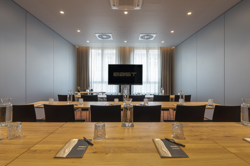 Um das Angebot zu vervollständigen, bietet das east Private Cinema und die 10 Tagungsräume, die mit Tageslicht einen idealen Rahmen bieten, egal ob für eine Tagung, ein Meeting, eine Kundenveranstaltung oder eine Präsentation.