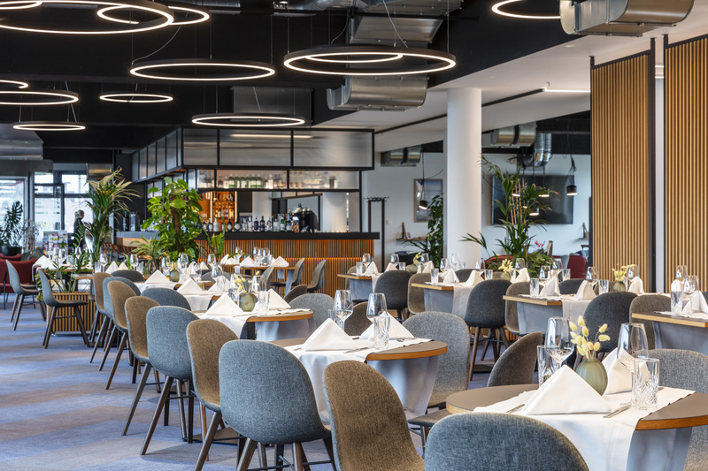 Ein Restaurant mit Frühstücksbuffet und regionaler Küche, Lounge und Bar, ein Fitnessraum sowie E-Ladestationen und Fahrradstellplätze runden das Business-Angebot ab.